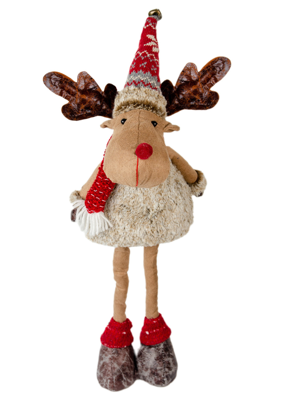 | Особливості | • червоно-сіра в'язана шапочка з контрастним візерунком і дзвіночком і шарфик • ніжна хутряна текстура тулуба • тулуба, що стійка на довгих ніжках |