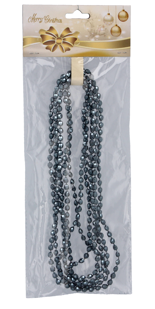 Коли наближаються різдвяні свята — новорічного декору багато не буває!Оригінальний варіант оздоблення — привабливі декоративні пластикові буси. Гірлянда стильного сіро-синього кольору* з тендітних глянцевих намистинок стане чудовою прикрасою вашого новорічного дерева, або як доповнюючий елемент декору у святковому інтер'єрі.